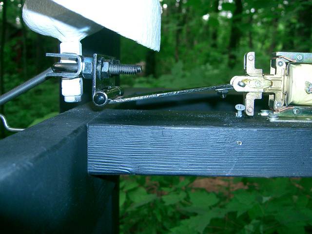 This is a very simple and effective tilt mounting method. The solenoid mounts to a wooden baseplate attached to each